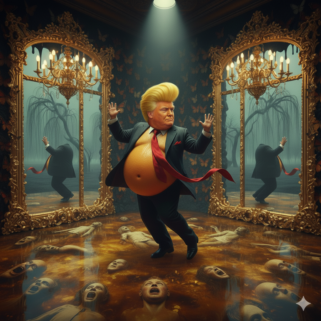De Keizer, een overrijpe mandarijn, was een zwetende, oranje bal van woede en gistend vruchtvlees. De geur die hij met zich meedroeg was een walm die je maag deed keren, een mengsel van oude zweet, bedorven fruit, en de ranzige, metaalachtige stank van rottend geld. Het was de ziekmakende geur van zijn eigen bedompte lijf én de doordringende, vieze stank van zijn karakter. Hij rook naar de troebele lucht in zijn eigen hoofd.